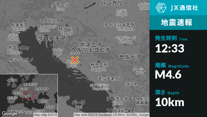 | 震源地 | ボスニア・ヘルツェゴビナのGlamocから西22kmの地点 |