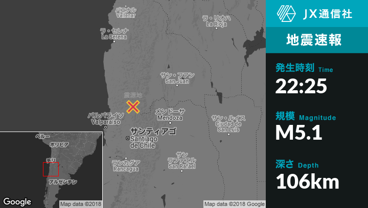 | 震源地 | チリのSan Felipeから北北東65kmの地点 |
