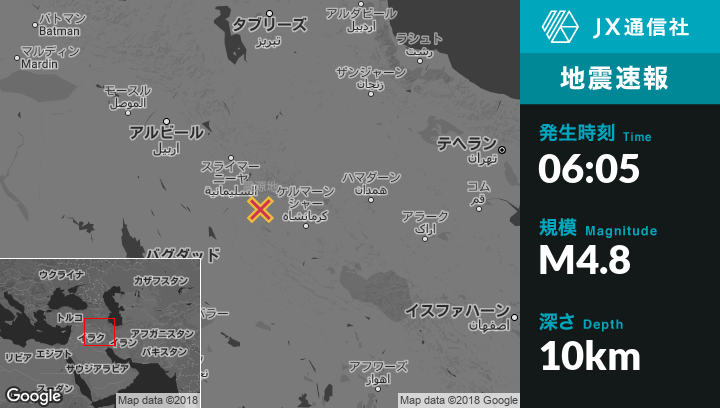 | 震源地 | イランのSarpol-e Zahabから北北東34kmの地点 |