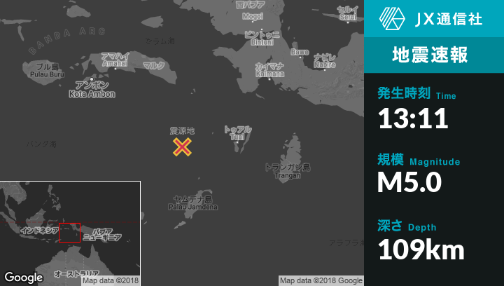 | 震源地 | インドネシアのTualから西190kmの地点 |
