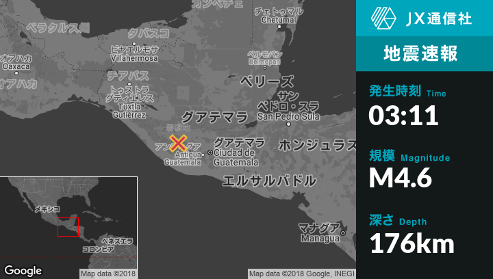 | 震源地 | グアテマラのSan Carlos Sijaから北6kmの地点 |