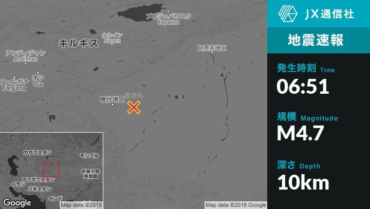 9月04日 06:51頃、中国のArzakから東南東70kmの地点でM4.7の地震がありました。