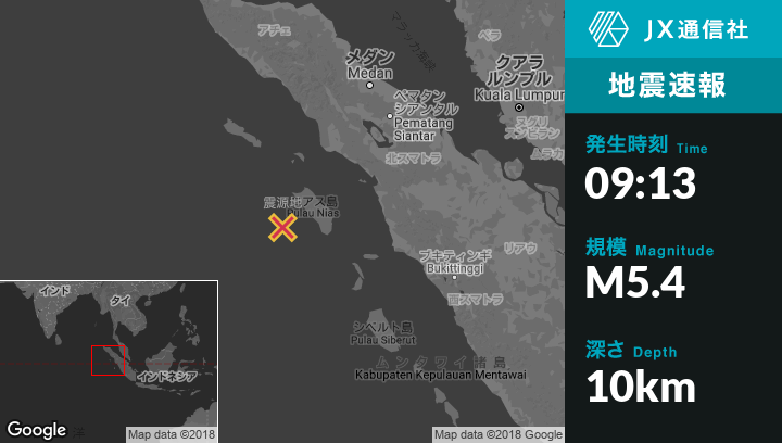 | 震源地 | インドネシアのSinabangから南南東190kmの地点 |