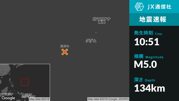 | 震源地 | グアムのMerizo Villageから西南西251kmの地点 |