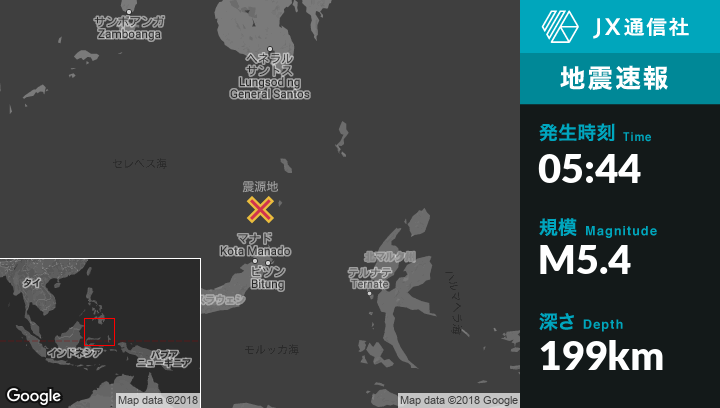 | 震源地 | インドネシアのManadoから北136kmの地点 |