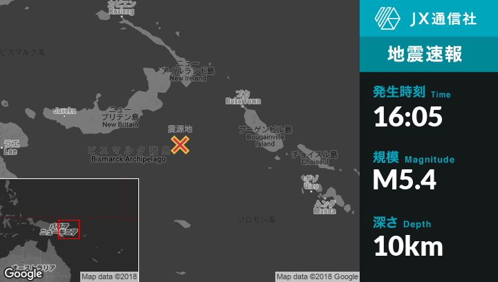 | 震源地 | パプアニューギニアのTaronから南228kmの地点 |