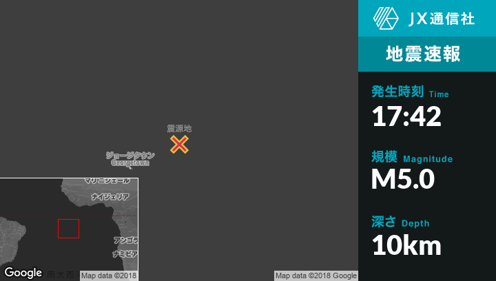 | 震源地 | セントヘレナのGeorgetownから東北東198kmの地点 |