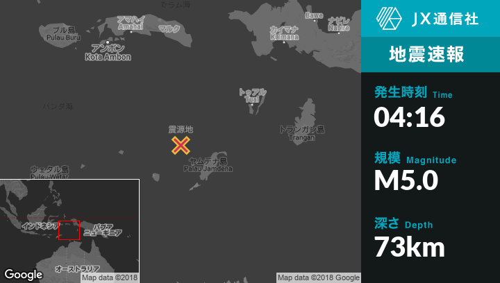 | 震源地 | インドネシアのSaumlakiから北西156kmの地点 |