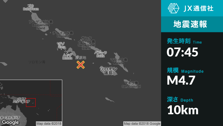 | 震源地 | ソロモン諸島のDadaliから南西143kmの地点 |