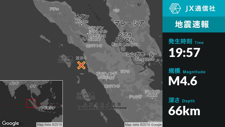 | 震源地 | インドネシアのPadangsidempuanから南西90kmの地点 |