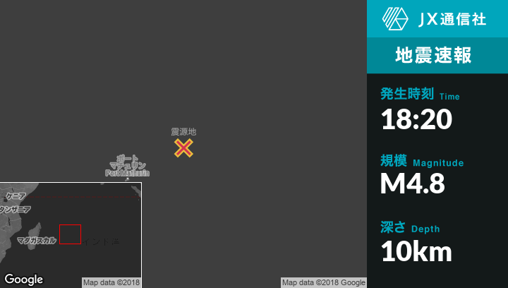 | 震源地 | モーリシャスのPort Mathurinから東北東215kmの地点 |