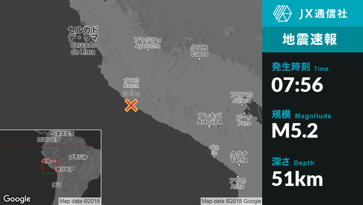| 震源地 | ペルーのMinas de Marconaから南東25kmの地点 |