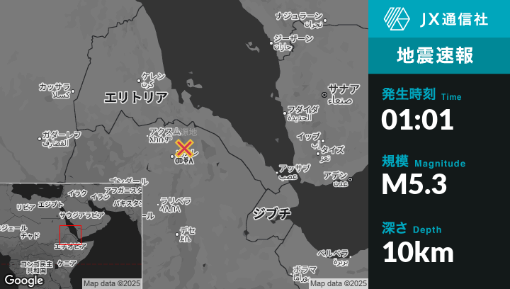 | 震源地 | エチオピアのMek'eleから北東58kmの地点 |