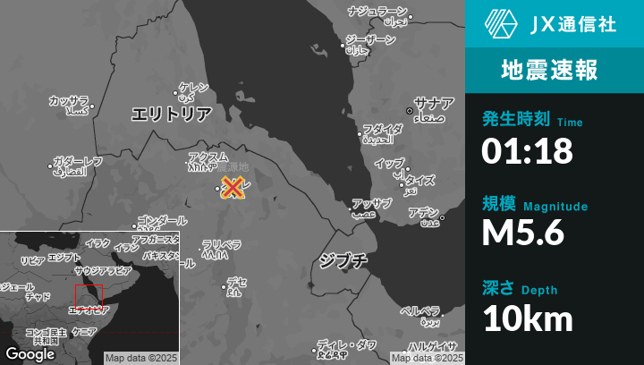 | 震源地 | エチオピアのMek'eleから東北東45kmの地点 |