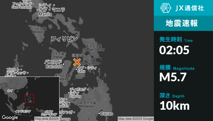 | 震源地 | フィリピンのTambongonから南南東2kmの地点 |