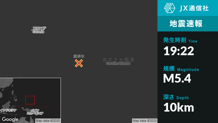 | 震源地 | ミクロネシアのFaisから南南東299kmの地点 |