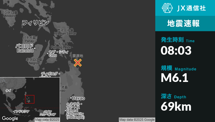 10月17日 08:03頃、フィリピンのUnionから西南西0kmの地点でM6.1の地震がありました。