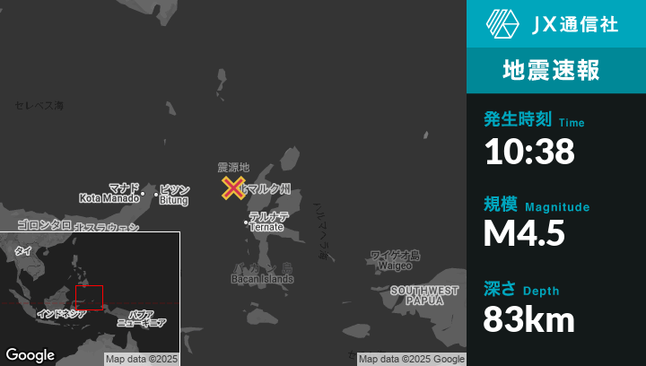 | 震源地 | インドネシアのTobeloから西103kmの地点 |