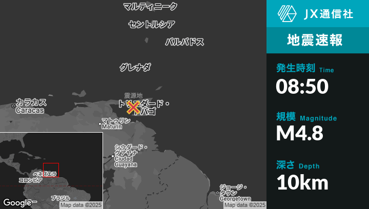 | 震源地 | トリニダード・トバゴのMucurapoから西南西27kmの地点 |