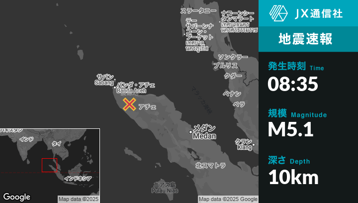 | 震源地 | インドネシアのReuleuetから南西46kmの地点 |