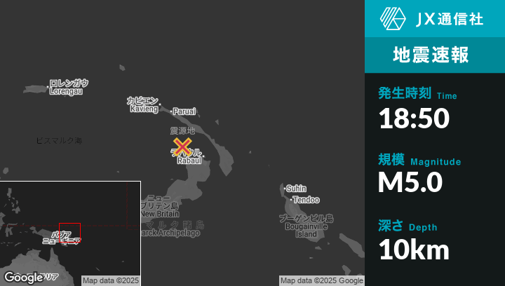 | 震源地 | パプアニューギニアのRabaulから西北西87kmの地点 |