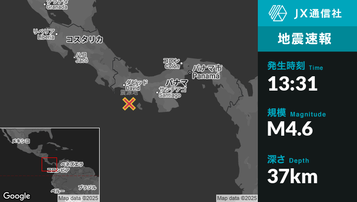 | 震源地 | パナマのBoca Chicaから南55kmの地点 |