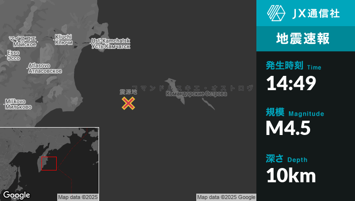 | 震源地 | ロシアのUst’-Kamchatsk Staryyから南南東192kmの地点 |