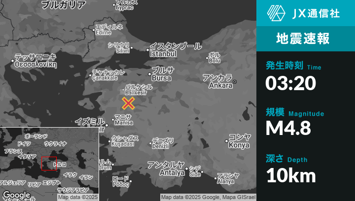 | 震源地 | トルコのSındırgıから北西8kmの地点 |