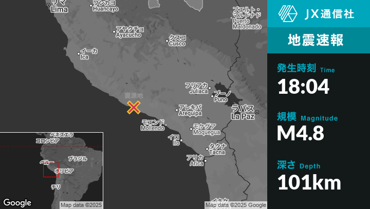 | 震源地 | ペルーのAticoから東北東26kmの地点 |