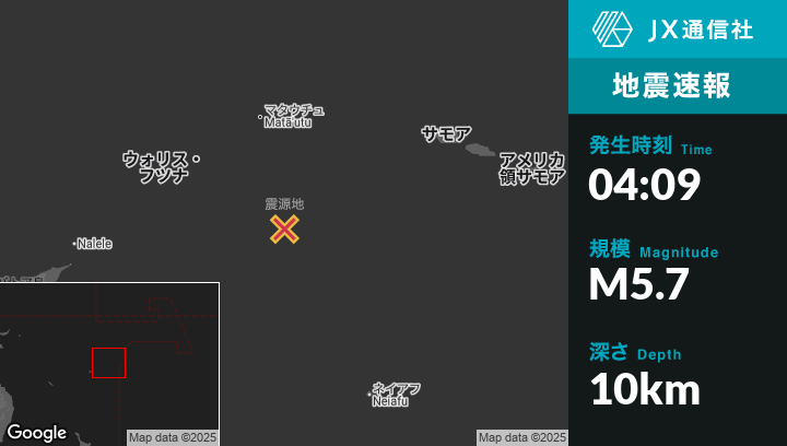11月15日 04:09頃、トンガのHihifoから西北西214kmの地点でM5.7の地震がありました。