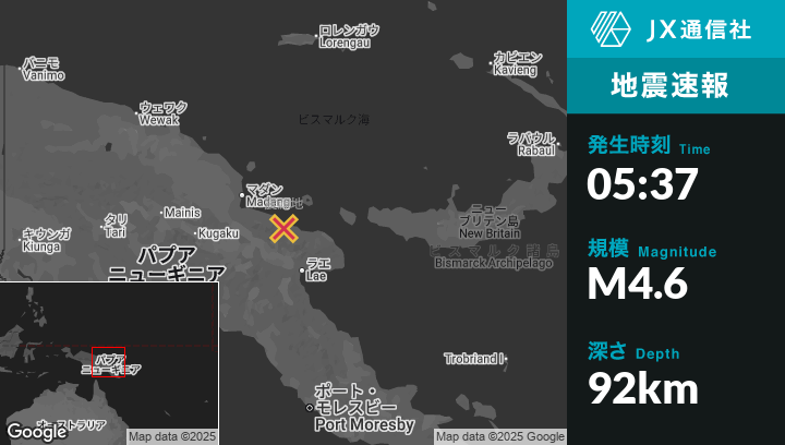 | 震源地 | パプアニューギニアのKainantuから北東101kmの地点 |