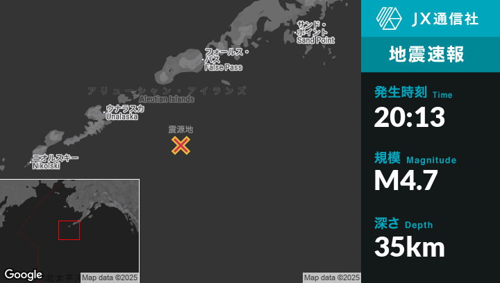 | 震源地 | アラスカのAkutanから南東141kmの地点 |