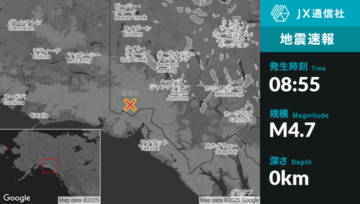 | 震源地 | アラスカのYakutatから北北西107kmの地点 |