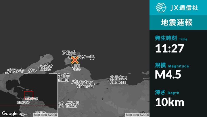 | 震源地 | ベネズエラのPueblo Nuevoから東北東48kmの地点 |