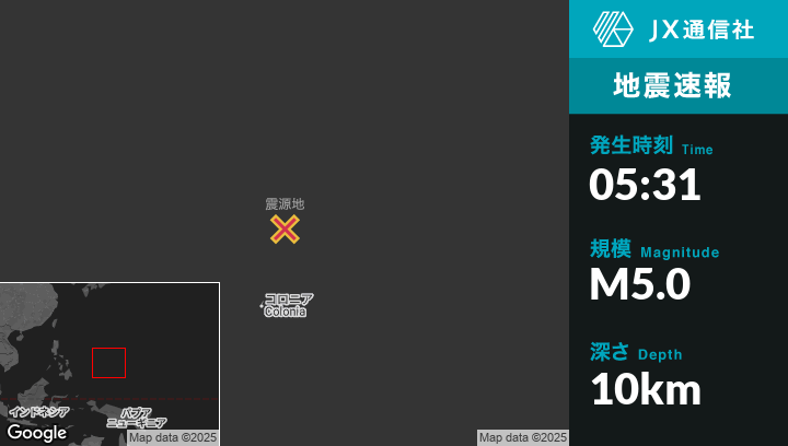 | 震源地 | ミクロネシアのColoniaから北北東187kmの地点 |