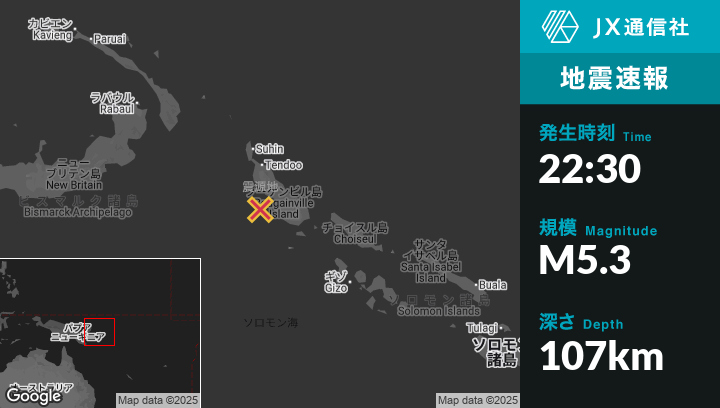 | 震源地 | パプアニューギニアのPangunaから西69kmの地点 |