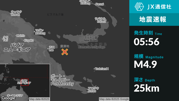 | 震源地 | パプアニューギニアのFinschhafenから東南東78kmの地点 |