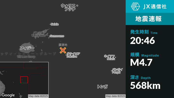 | 震源地 | フィジーのLevukaから東202kmの地点 |