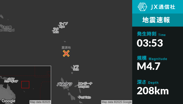 | 震源地 | バヌアツのSolaから北北西161kmの地点 |