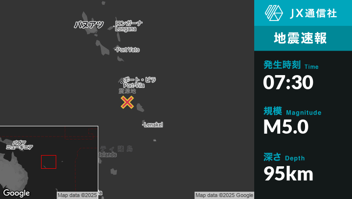 | 震源地 | バヌアツのPort-Vilaから南南東84kmの地点 |