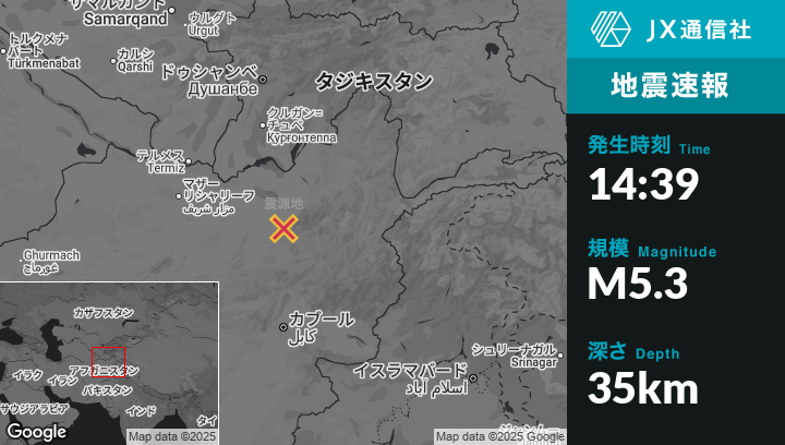 | 震源地 | アフガニスタンのNahrīnから北北東25kmの地点 |
