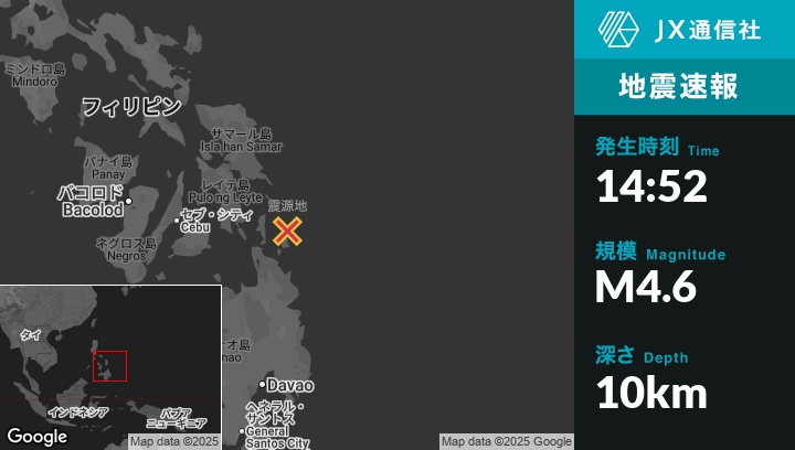 12月20日 14:52頃、フィリピンのSanta Monicaから北北東22kmの地点でM4.6の地震がありました。