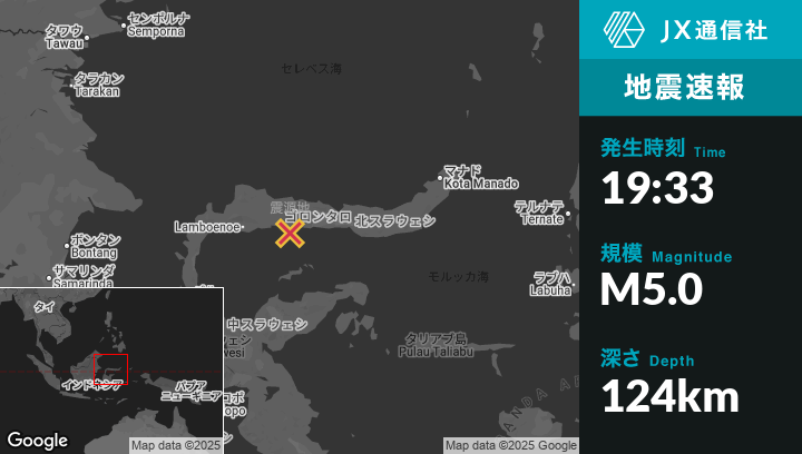 | 震源地 | インドネシアのGorontaloから西130kmの地点 |