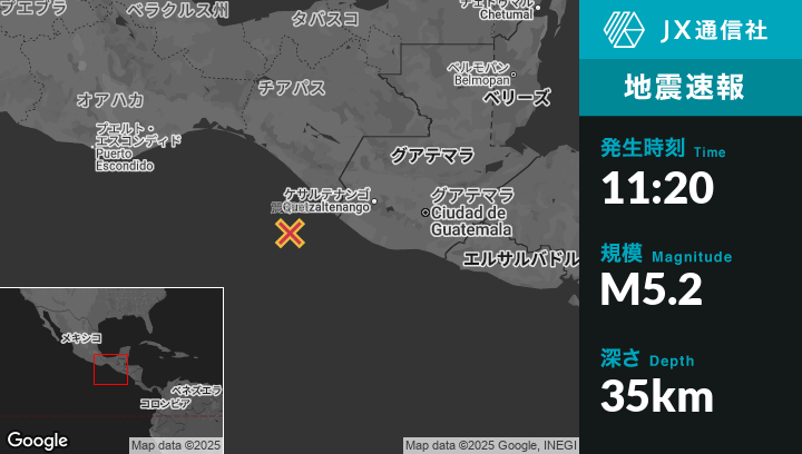 | 震源地 | メキシコのPuerto Maderoから西南西93kmの地点 |