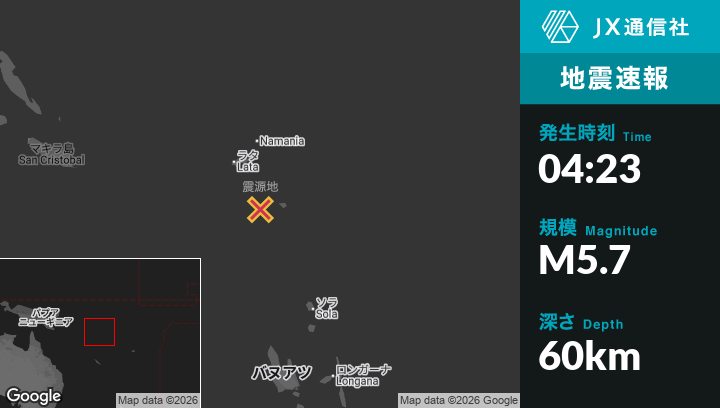 | 震源地 | ソロモン諸島のLataから南南東118kmの地点 |