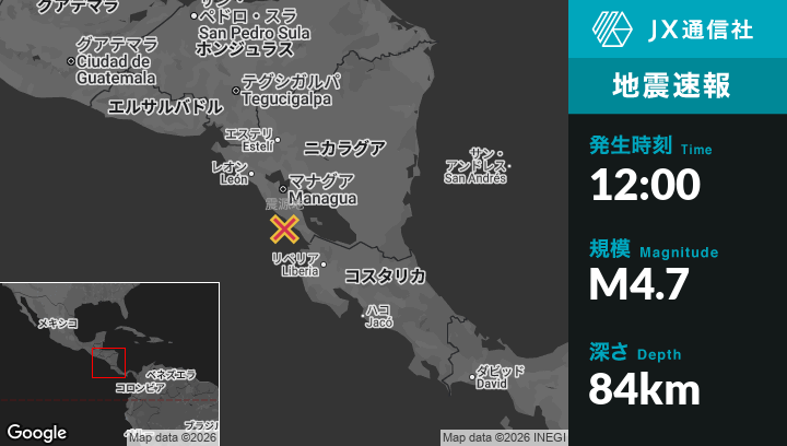 | 震源地 | ニカラグアのLa Conquistaから南29kmの地点 |