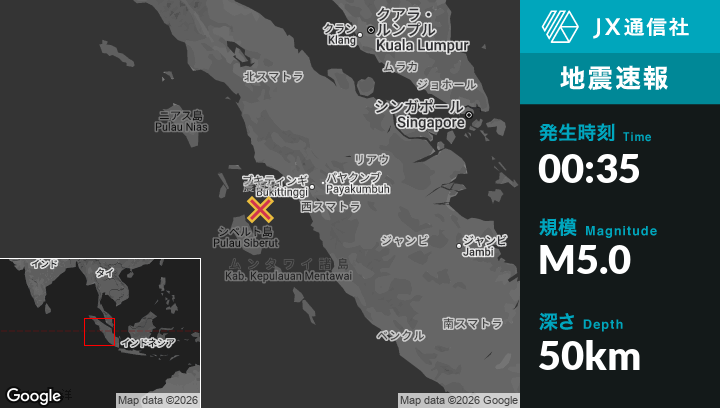 | 震源地 | インドネシアのPariamanから西95kmの地点 |