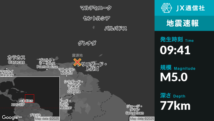 | 震源地 | ベネズエラのGüiriaから北北西33kmの地点 |