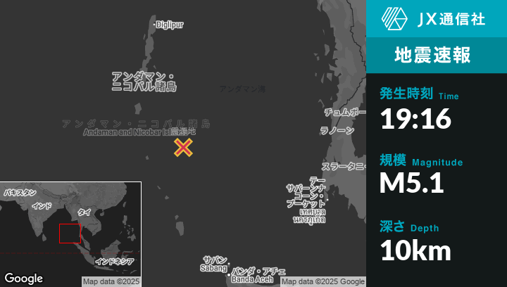 | 震源地 | インドのPort Blairから南南東259kmの地点 |