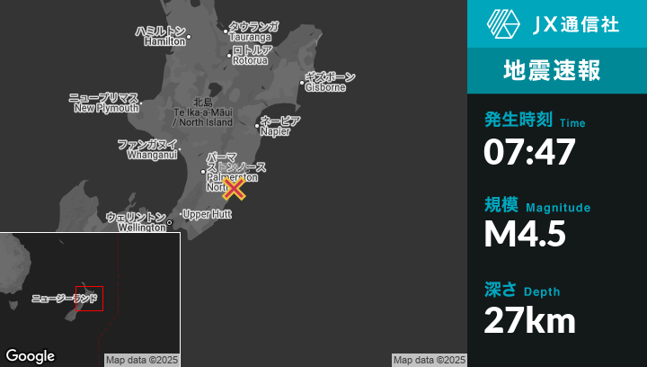 | 震源地 | ニュージーランドのCastlepointから北北東38kmの地点 |